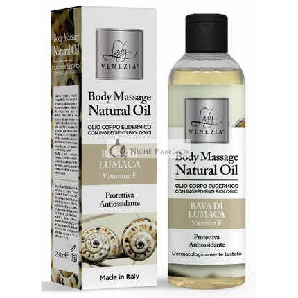 Kényeztesse magát a Lady Venezia Masszázsolaj luxus élményével!Ez a kiváló masszázsolaj, amelyet csiga nyálkájának tápláló tulajdonságai gazdagítanak, mélyen pihentető és megújító élményt nyújt a bőrének. Minden bőrtípushoz tökéletes, simán csúszik a bőrön, és puha, rugalmas és hidratált érzetet hagy maga után.