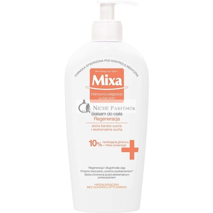 Mixa Regeneráló Testápoló kifejezetten száraz és extrán száraz bőrre lett kifejlesztve, intenzív hidratálást és táplálást biztosítva. Ez a testápoló természetes összetevőkkel van gazdagítva, amelyek segítenek helyreállítani a bőr nedvességvédő barrierét, így a bőr puha, sima és mélyen hidratált lesz.