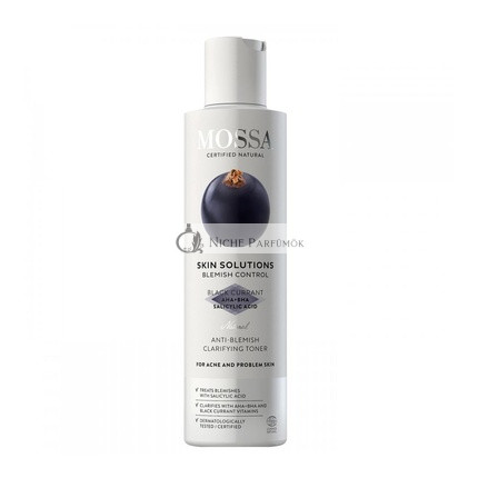 Mossa Bőrápolás Tisztító Anti-Folt Tonik Fekete Ribizli egy erőteljes tonik, amely segít csökkenteni a foltok és a egyenetlen bőrszín megjelenését. Ez a 200ml-es flakon természetes összetevőkkel van formulázva, amelyek szinergikusan működnek a bőr tisztításában és felfrissítésében, így elengedhetetlen része a bőrápolási rutinjának.