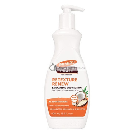 Minden bőrtípusra ideális, ez a testápoló tökéletes a napi használatra. Akár száraz bőr revitalizálására, akár a bőr természetes ragyogásának megőrzésére vágyik, a Palmer's Kakaóvaj Formula Retexturáló és Megújító Hámlasztó Testápoló a tökéletes megoldás.