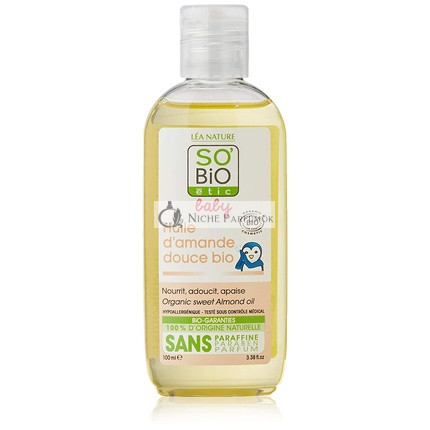 SO'BiO étic Bio Édesmandula Olajat, egy hipoallergén testápoló olajat, amely tökéletes a bőr táplálására és hidratálására. Ez a 100ml-es palack tele van természetes jóságokkal, így elengedhetetlen része a bőrápolási rutinjának.